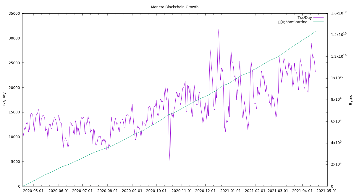 *2020.04— 2021.04門羅幣交易量從每天約10,000 tx增長到每天約23,000 tx